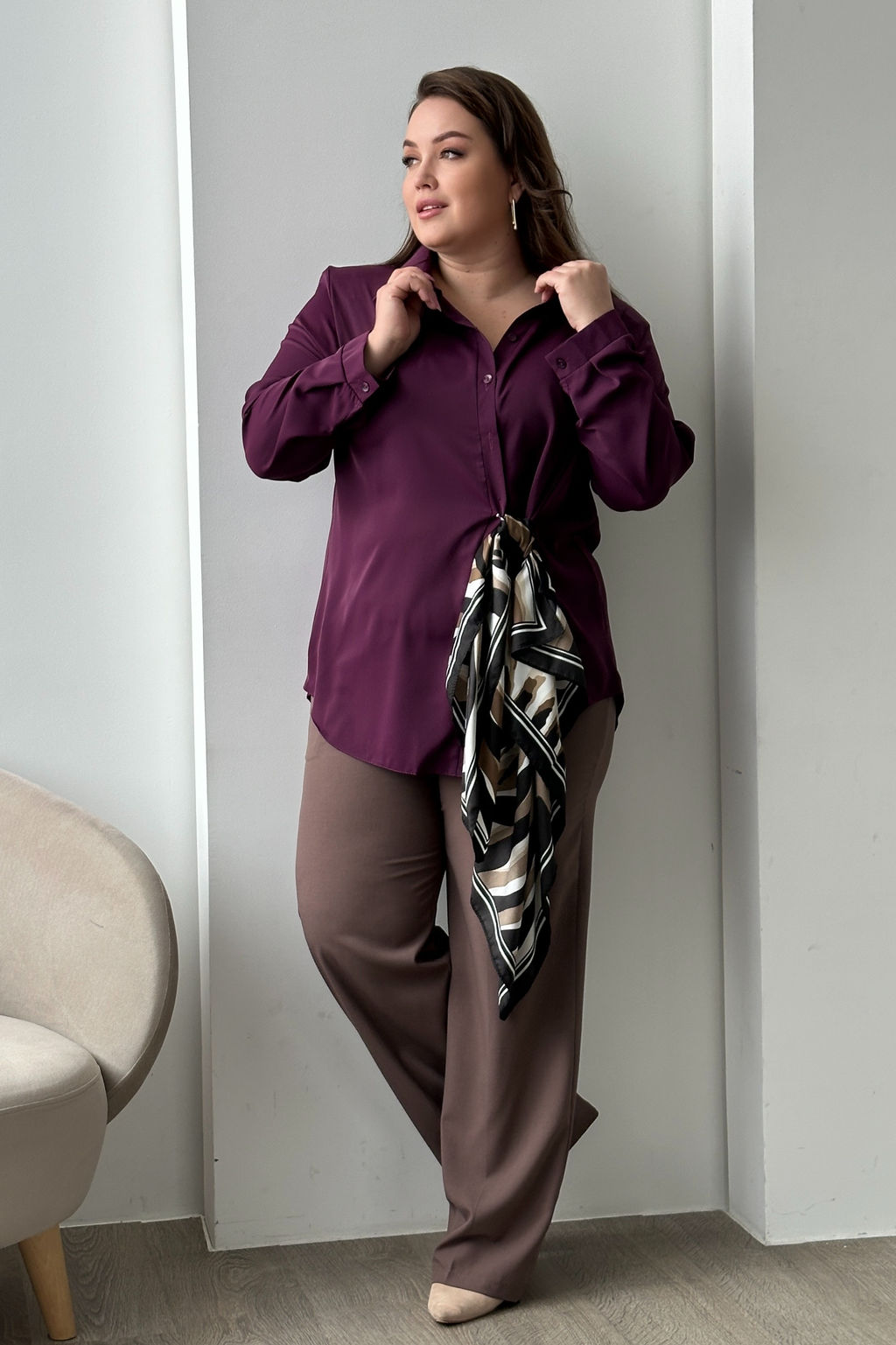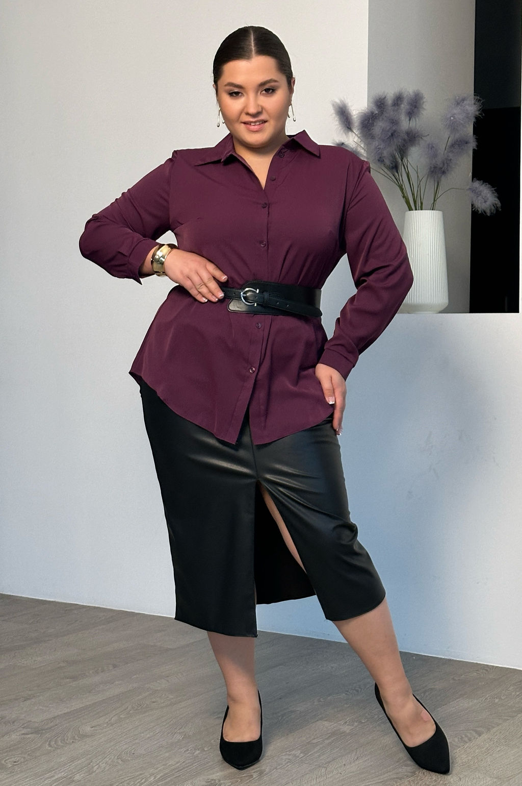 Удлиненная рубашка свободного кроя - идеальный вариант для женщин, ценящих простоту и элегантность. Модель привлекает оригинальным дизайном. Рубашка застегивается спереди на оригинальные пуговки под планку. Имеет классический отложной воротник и рукава полной длины, которые застегиваются на пуговках по низу. Вытачки на груди и закругленные бока обеспечивают оптимальную посадку по фигуре.  Свободный крой искусно обыгрывает силуэт, а мягкий, приятный телу материал подарит комфорт на весь день. Отлично подходит для комбинирования с брюками и юбками.