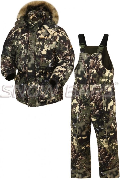 Костюм зимний "Hunter Premium", производство Россия. Ткань "алова", подклад +флис, цвет " питон ",  размеры44-62. Удлиненная куртка имеет центральную двухзамковую молнию с ветрозащитной планкой на кнопках, регулируется кулисой  с фиксатором по талии.  Воротник стойка с отделкой из аловы.  Спинка с отделкой из флиса. Отстегивающийся капюшон регулируется по объёму, меховая опушка отстегивается.Рукава с манжетами на резинке.  На куртке  4 внешних кармана  и 1 внутренний. На куртке 2 накладных кармана оснащены потрантажами. Полукомбинезон с поясом на резинке и со шлевками под ремень оснащен 4 карманами.