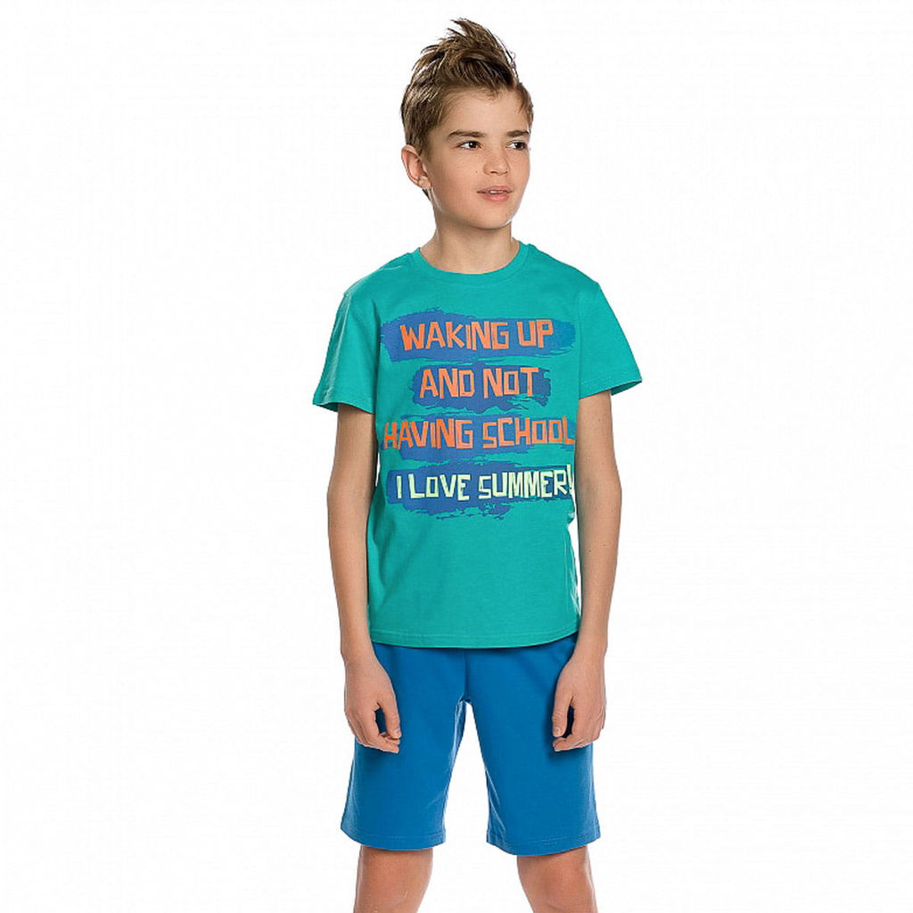 Цвет: изумрудный Бренд: Pelican Пол: Мальчики Производитель: Китай Сезон: лето Категория: Костюм летний Комплектация: 1 футболка, 1 шорты Уход за вещью: Стирать при температуре не более 40С Страна бренда: Россия Состав материала: 100% хлопок Замеры модели* * рост указан приблизительно, ориентируйтесь на замеры * Размер 116-6 (рост 110-116 см) длина футболки 43 см, полуобхват груди 32 см, длина шорт 32 см, полуобхват талии 27 см. * Размер 7 (рост 116-122 см) длина футболки 46 см, полуобхват груди 34 см, длина шорт 36 см, полуобхват талии 27 см. * Размер 128-8 (рост 122-128 см) длина футболки 47 см, полуобхват груди 35 см, длина шорт 39 см, полуобхват талии 28 см. * Размер 9 (рост 128-134 см) длина футболки 50 см, полуобхват груди 36 см, длина шорт 38 см, полуобхват талии 29 см. * Размер 10 (рост 134-140 см) длина футболки 51 см, полуобхват груди 37 см, длина шорт 41 см, полуобхват талии 29 см. Комплект для мальчиков: футболка и шорты. Классическая футболка, центральный принт. Перевод принта "Просыпаться, и не нужно в школу. Я люблю лето!". Шорты с внутренней регулировкой по поясу.