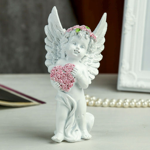 • Фигурка полистоун Ангел в розовом венке с сердцем из роз, 15?7.8?5.5 см, МИКС