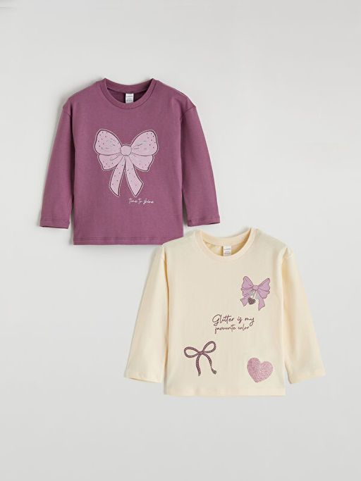 • Uzun Kollu K?z ?ocuk Bask?l? 2li Ti??rt