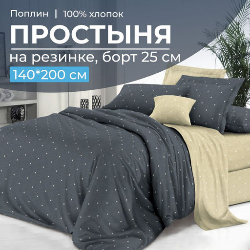 Артикул: Простыня на резинке 140*200 см, поплин, борт 25 см (Мэсот (компаньон))