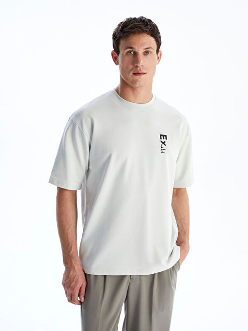 • Bisiklet Yaka Bask?l? Penye Erkek Ti??rt