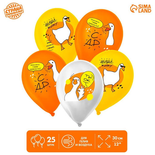 • Воздушный шар латексный 12" «С ДР», гусь, 25 шт.