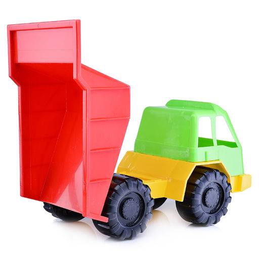 • В комплекте с грузовиком - набор из 6 разноцветных кубиков размером граней 8 см.