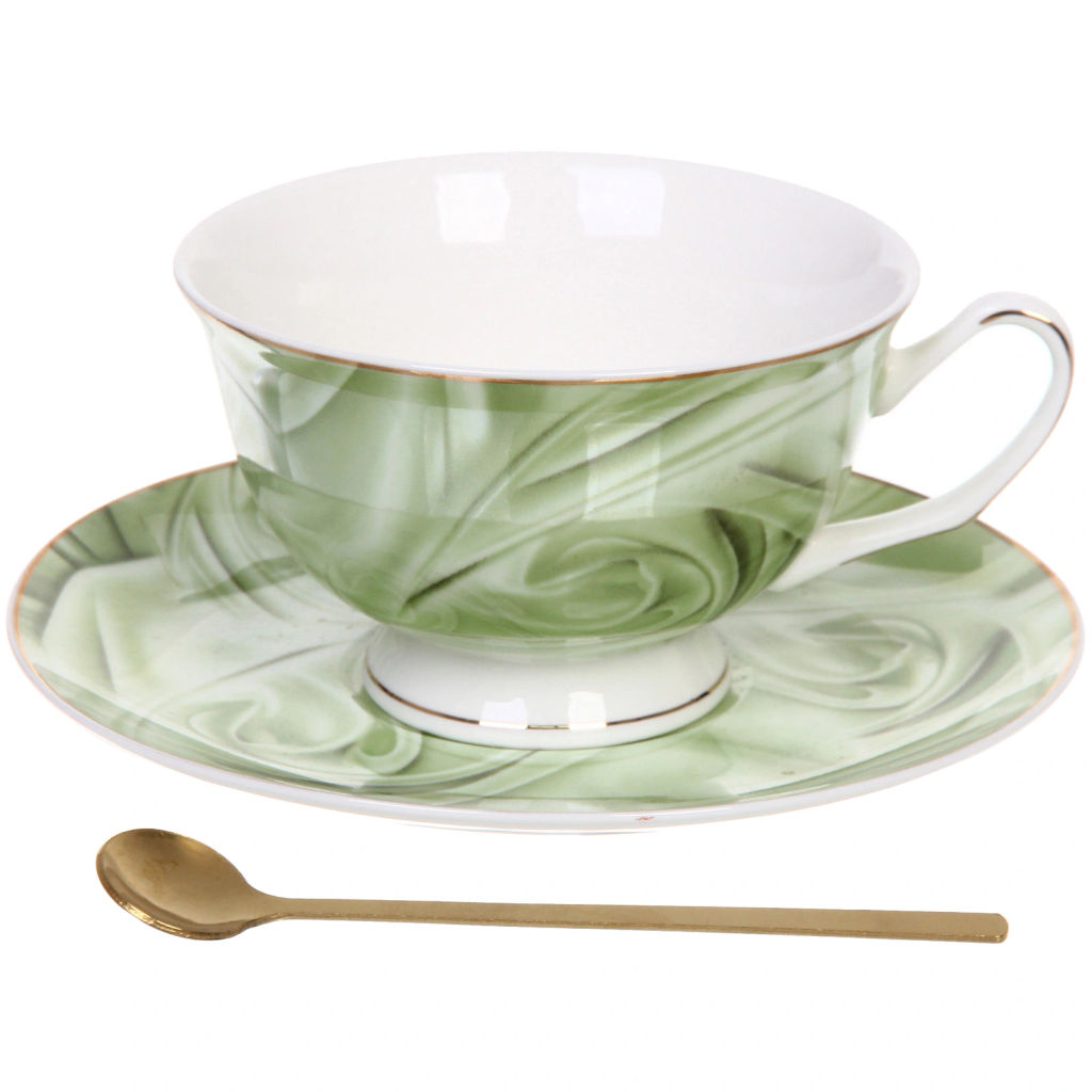 Чайная пара "Поэзия" (кружка 220мл, блюдце,ложка) зеленая
