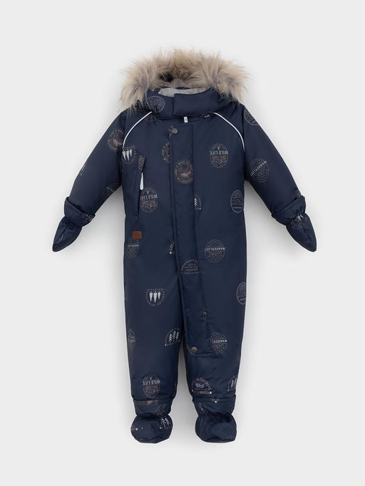 Зимний комбинезон ясельный с утеплителем Fellex®: 300 г/м2. Выполнен из мембранной ткани с дополнительной тефлоновой обработкой, которая предохраняет изделие от загрязнений и отталкивает влагу. Подклад выполнен из 100% хлопка. Комбинезон застёгивается на молнию и внешнюю планку на липучках, предусмотрена защита подбородка. Несъёмный капюшон имеет эластичную утяжку со стопперами и отстёгивающийся мех на молнии. Резинка по спинке для лучшего прилегания. На груди карман на молнии. По рукавам и низу изделия эластичные манжеты, на ножках отстёгивающиеся силиконовые штрипки. В размерах 74-80 и 80-86 в комплекте идут рукавицы и пинетки. Во всех изделиях верхнего ассортимента для безопасности ребёнка предусмотрены светоотражающие элементы.. Состав: верх: 80% полиэстер, 20% полиуретан; подклад: 100% хлопок; Утеплитель: 100% полиэстер