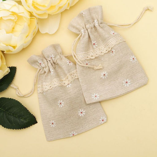 • Цена за 50 шт. Мешочек подарочный Ромашка, лён, 10?13.5 см, цвет кремовый