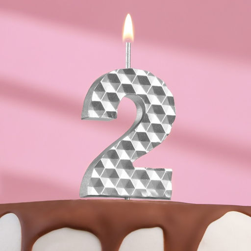 • Свеча в торт на шпажке «Соты», цифра 2, 7 см, серебро