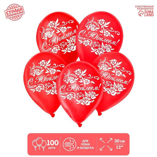 • Воздушные шары латексные 12" «С юбилеем», 100 шт., МИКС