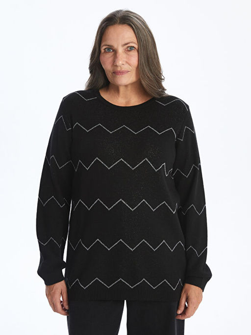 Bisiklet Yaka Desenli Kad?n Triko Kazak