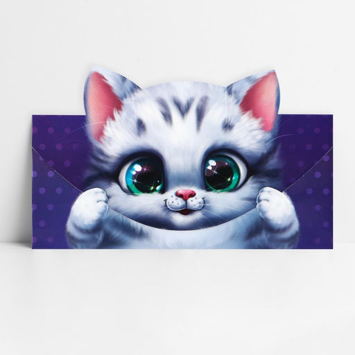 Цена за 5 шт. Конверт для денег фигурный «Котёнок», 17.5 х 8 см