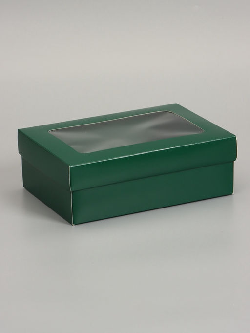 Цена за 5 шт. Коробка складная, крышка-дно «Армейский зелёный», с окном 21×15×7 см