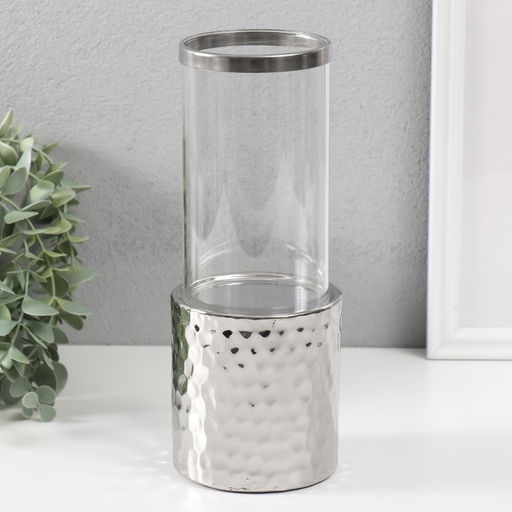 Подсвечник на 1 свечу «Нуар. Цилиндр», керамика, стекло, d=7.5 см, серебро, 9×9×24 см