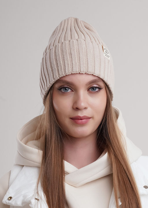 Женская шапка с отворотом, без подклада, декорирована нашивкой логотип. Идеально подойдёт для весенне - осеннего периода. 50% хлопок, 50% ПАН(акрил)