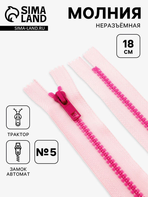 • Цена за 10 шт. Молния «Трактор», №5, неразъёмная, замок автомат, 18 см, розовая