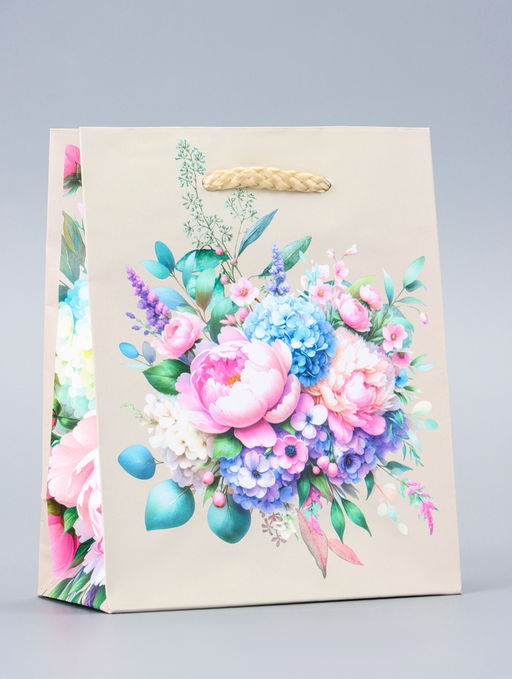 * Нежный женственный дизайн: Бежевый фон с цветочным орнаментом создает ощущение нежности и изящества. Этот пакет станет подходящим выбором для подарка девушке или женщине на 8 Марта, День рождения или 14 Февраля.