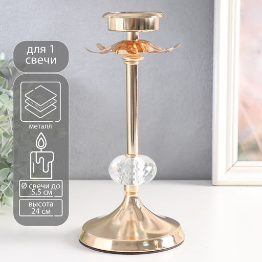 Подсвечник на 1 свечу Ножка цветка, d=5.5 см, под золото, 11?11?24 см