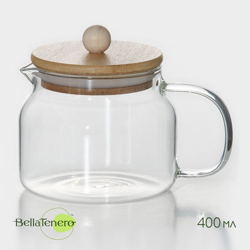 Заварочный чайник BellaTenero «Эко», 400 мл, 13.5×10×10.5 см, с бамбуковой крышкой, стекло