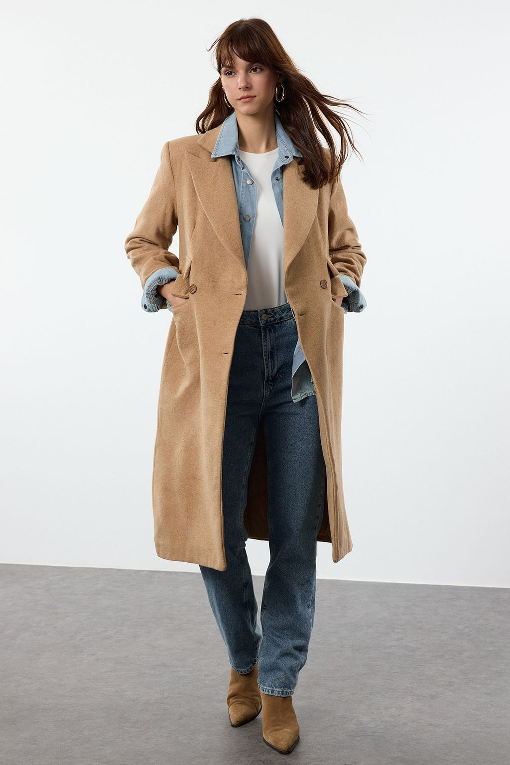 Camel Cep Detayl? Regular Yunlu Uzun Kaban TWOAW25KB00043