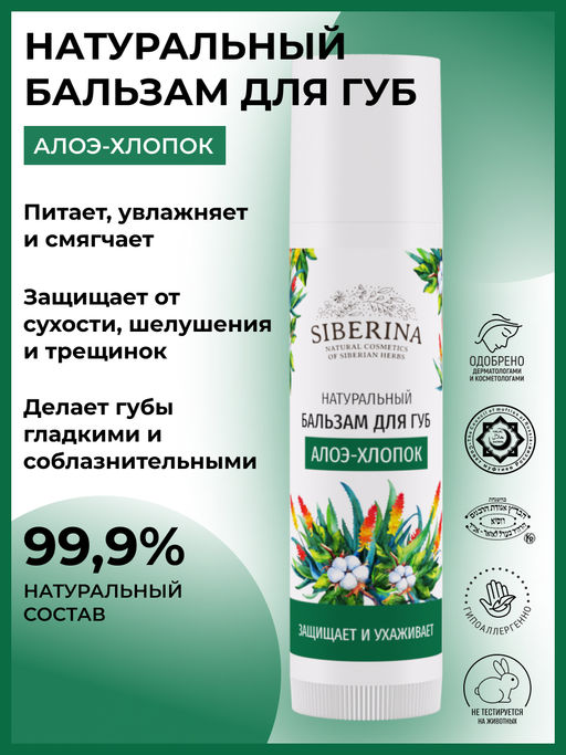 Описание товара БАЛЬЗАМ ДЛЯ ГУБ "АЛОЭ-ХЛОПОК"