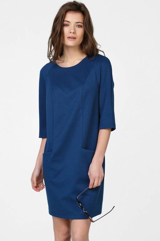 Особенности: Платье прямого силуэта из плотного трикотажа. Детали: рукав-реглан, рельефы по переду переходящие в карманы, по спинке выполнены планки с застежкой на молнию.