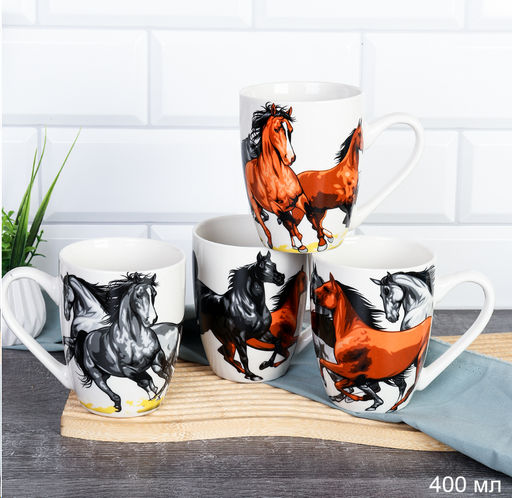 • Кружка 400 мл Лошади / AA-304-90 /уп 72/ микс 4