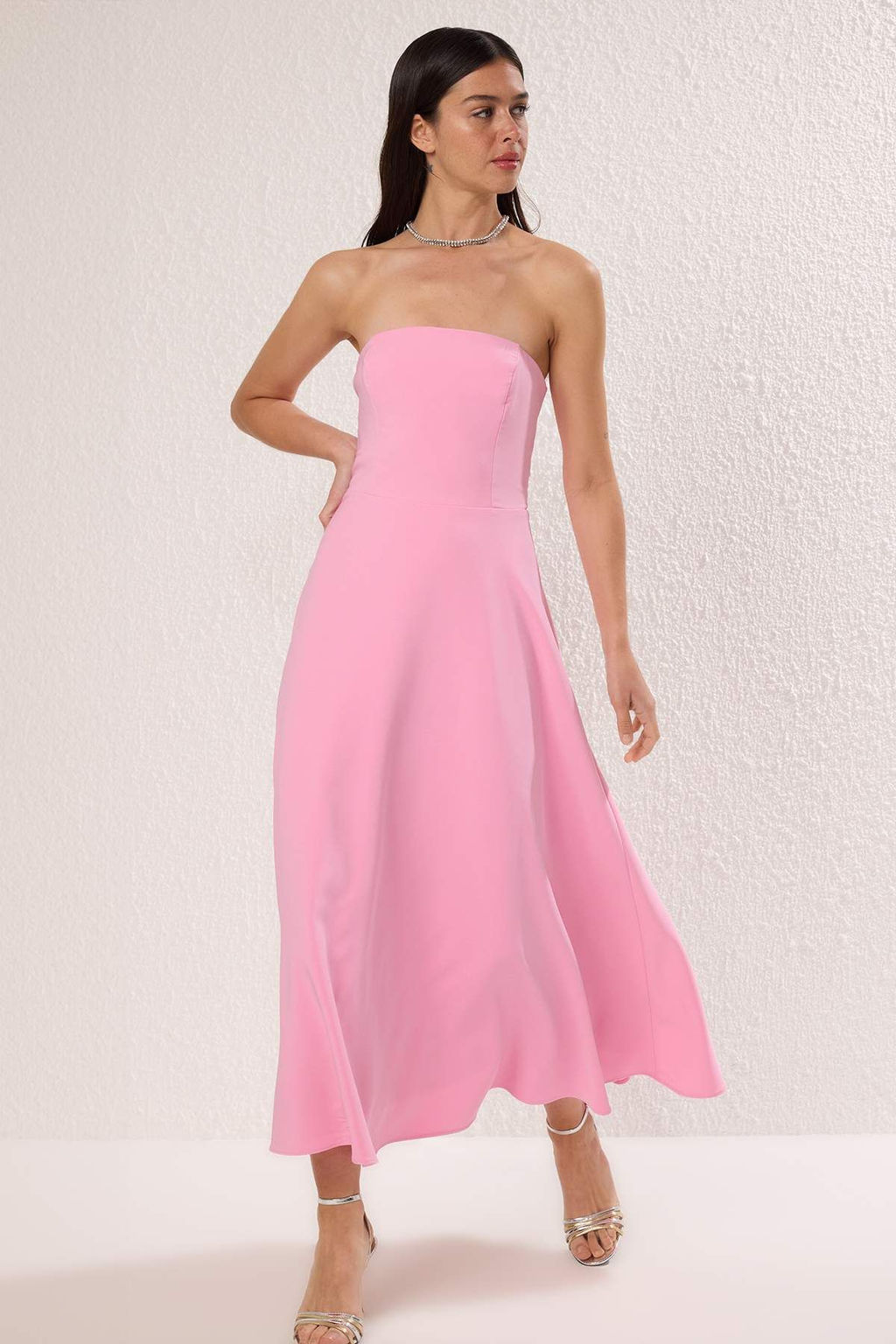 Pembe A-Kesim Straplez Dokuma S?k Abiye Gece Mezuniyet Elbisesi TPRSS24EL00139