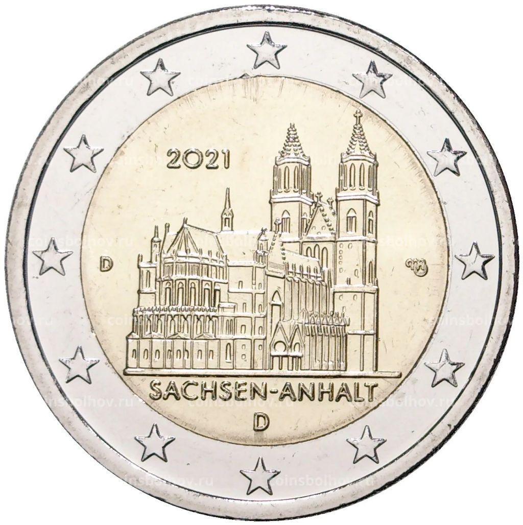 • Монета 2 евро 2021 года D Германия Федеральные земли Германии  Саксония-Анхальт (Магдебургский собор)