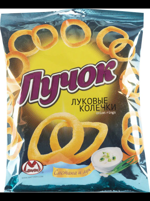 • 35 г (КОЛЬЦА) Лучок со вкусом СМЕТАНЫ и ЛУКА чипсы картофельные вес 35 г*25 шт (Матяш)