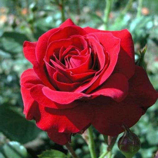 Флорибунда. Многолетний, достаточно ветвистый невысокий кустарник, который вырастает до 75см. Стебли усыпаны многочисленными шипами. Листья темно-зеленые, глянцевые. Цветки махровые диаметром 56см, которые собираются в соцветия по 5 штук. Бутоны имеют ярко-красный цвет и не выгорают на солнце. На одной ветке может быть до 30шт. Цветет роза практически непрерывно все лето (если подрезать побеги на разной высоте) и не теряет декоративности после дождя. Обладает устойчивостью к неблагоприятным погодным условиям. Ее отличает обильное и непрерывное цветение вплоть до наступления первых заморозков. Сорт имеет хороший иммунитет к поражению мучнистой росой и черной пятнистостью.