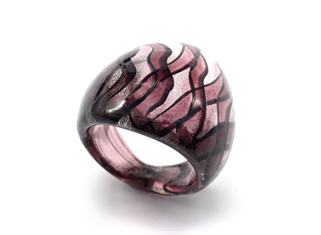 Стеклянное кольцо модель 4 цв.сиреневый Радуга камня