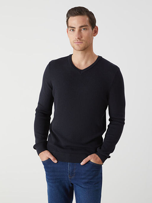 V Yaka Uzun Kollu Erkek Triko Kazak