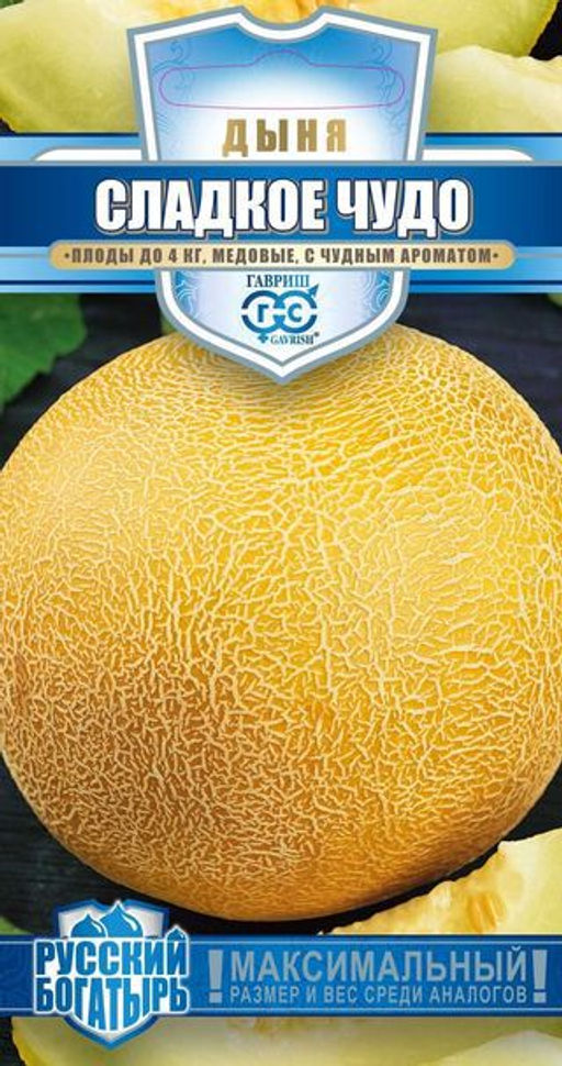 Непревзойденный среднеспелый (74-96 дней от всходов до первых сборов) высокоурожайный сорт. Растение плетистое, главная плеть средней длины. Плоды овально-округлые, желтые, с сетчатой поверхностью, массой 2-3 кг (в южных регионах при правильном уходе до 4 кг). Мякоть изумительно нежная, светло-кремовая, с чудным ароматом и медовым вкусом. Отличный десерт как в свежем виде, так и в виде цукатов и маринадов. Сорт устойчив к мучнистой росе. Плоды хорошо хранятся и транспортируются. Посев на рассаду в конце апреля. Высадка рассады в конце мая начале июня в возрасте 30-35 дней. Схема посадки 40-50х80-100 см. В южных регионах выращивают врасстил в открытом грунте прямым посевом в апреле-мае. Растения подвязывают к шпалере, до высоты 50 см удаляют все боковые побеги, последующие прищипывают над 1-3 листом. Для накопления плодами сахара в период плодоношения сокращают поливы.