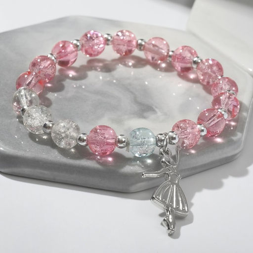 • Цена за 2 шт. Браслет «Радость» балерина, цвет бело-розовый в серебре, d=7