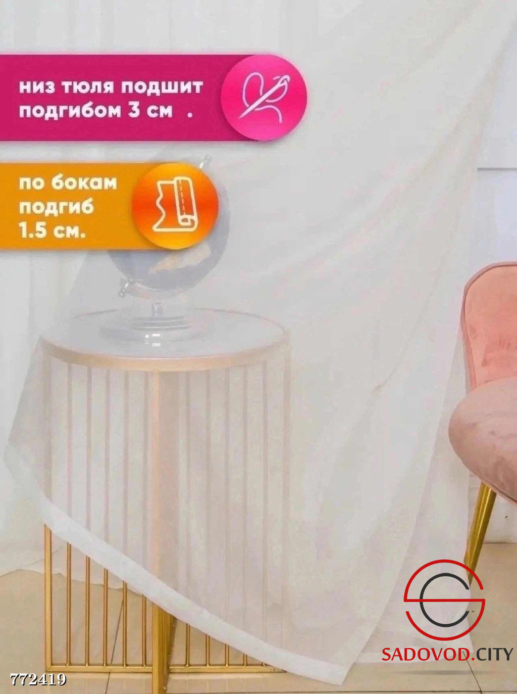• Тюль вуаль однотонная подшитая