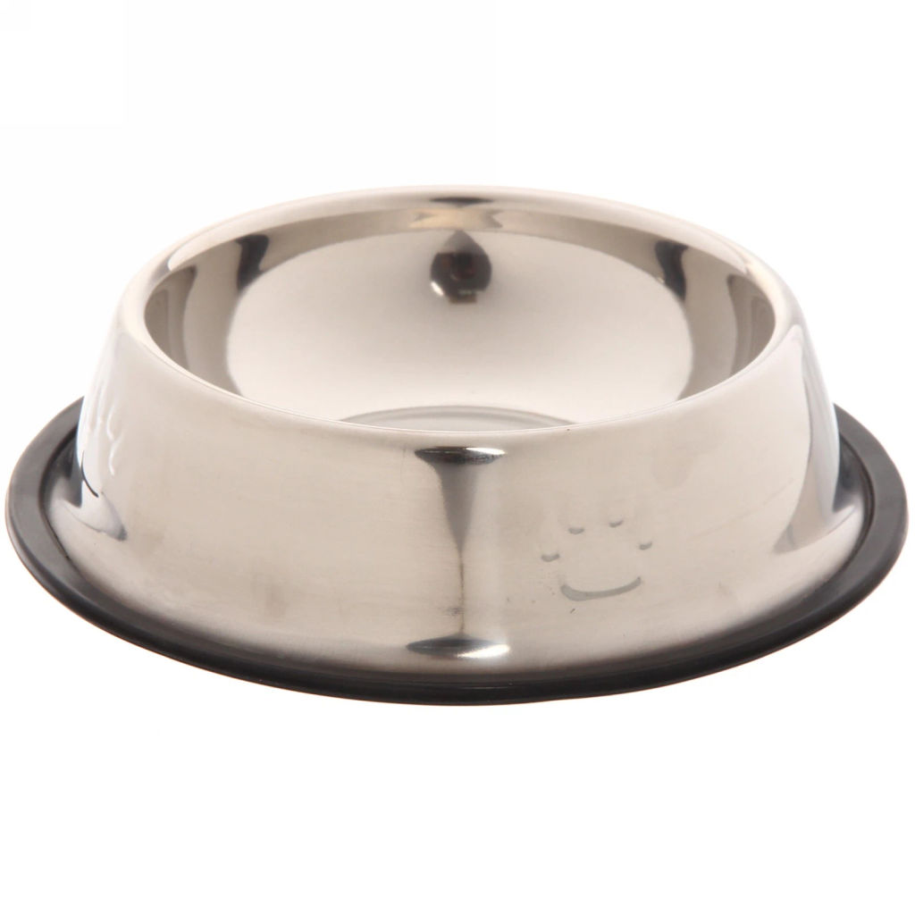 Цена за 2 шт. Миска металлическая для животных "ЛАПКИ", чёрный пластиковый ободок, размер М, 17,5*5см/270мл