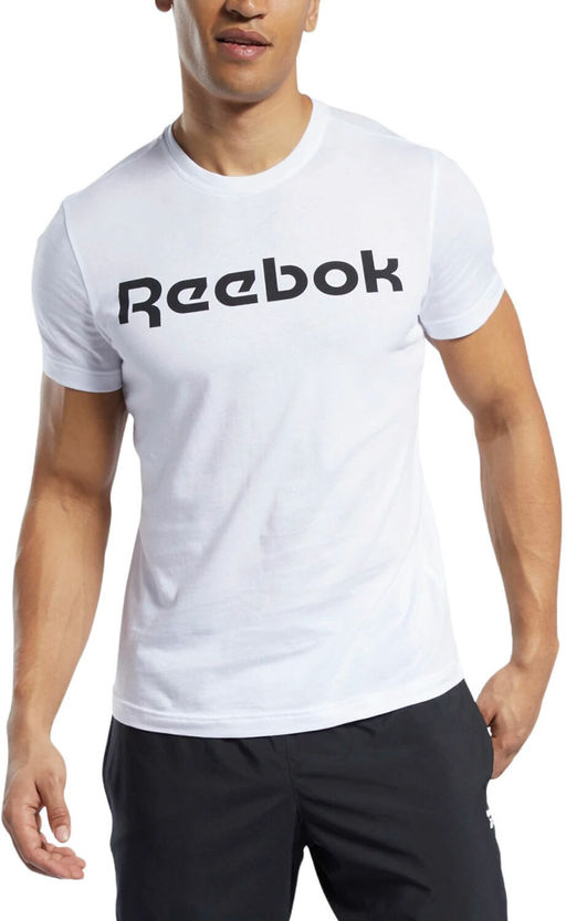 Мужская футболка в классическом спортивном стиле Reebok. Модель облегающего кроя выполнена из мягкого хлопка. Спереди красуется логотип Reebok.