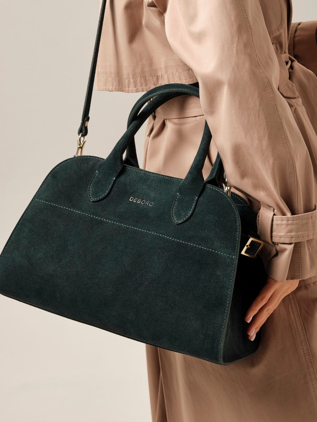 Женская сумка Deboro 31092 форест станет вашим верным спутником в повседневной жизни и обязательно привлечет внимание окружающих. Детали: натуральная замша, 2 ручки, боковая регулировка ширины сумки на ремешках, 1 внутреннее отделение с подкладкой из алькантары, 1 внутренний закрытый карман на молнии, застежка на магнит, съемный регулируемый плечевой ремень, металлические ножки. Удобные ручки обеспечат комфорт при носке. Внутреннее пространство продумано до мелочей: в нем достаточно места для хранения всех необходимых в течении дня вещей. Эта женская сумка идеально дополнит любой образ, будь то деловой стиль или повседневный наряд. Натуральная замша придаёт изделию роскошный вид и подчеркивает вашу индивидуальность. Выбирая женскую сумку Deboro 31092, вы выбираете качество и стиль. Благодаря своему изысканному дизайну и практичности, она станет незаменимым аксессуаром в вашем гардеробе. Позвольте себе наслаждаться элегантностью и комфортом с женской сумкой Deboro. -- Характеристики -- Цвет: форест Материал: Замша натуральная Бренд: Deboro Тип: Сумка на плечо, Сумка с ручками Страна-изготовитель: Россия Высота, см: 22 Ширина, см: 35 Глубина, см: 20 Материал подкладки: Алькантара Количество внутренних отделений: 1 Тип застежки: Молния Формат А4: не вмещает Высота ручек, см: 14 Длина плечевого ремня, см: 96 Вес товара, г: 755 Ручки: На запястье Пол: женская коллекция Группа товара: Сумки