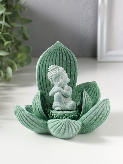 Сувенир полистоун "Лотос и Будда" зелёный 12,5х12,5х11 см