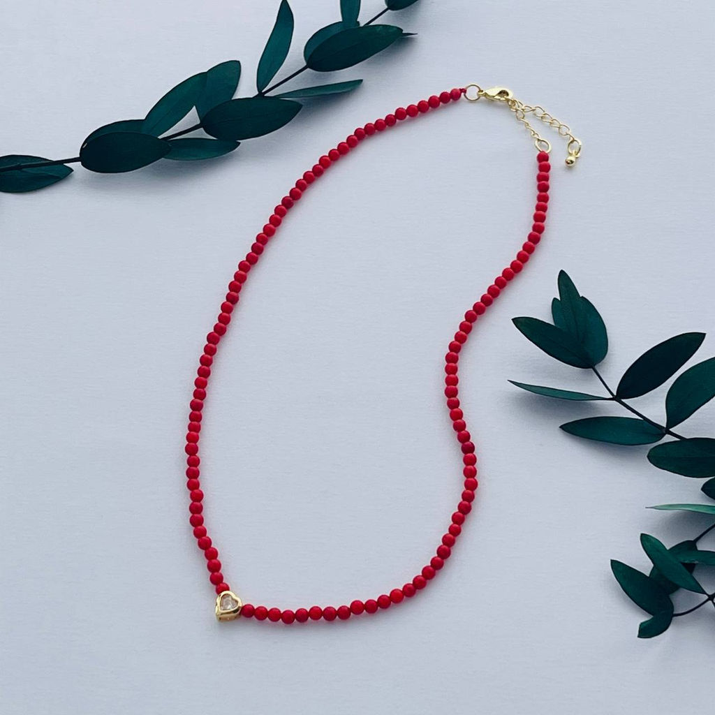 • Бусы из красного Коралла со вставкой "Сердце" 43 см +