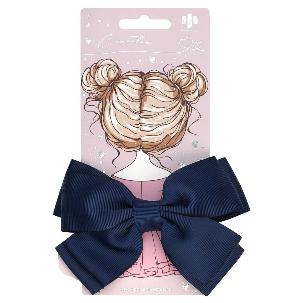 Резинка для волос арт. 71809 / 10 БАНТ (в наборе: 1шт., б/р, размер банта 12 см, вулканизированная резина, полиэстер, цвет: тёмно-синий, подложка из мелованного картона + ПЭТ-пакет с европодвесом)