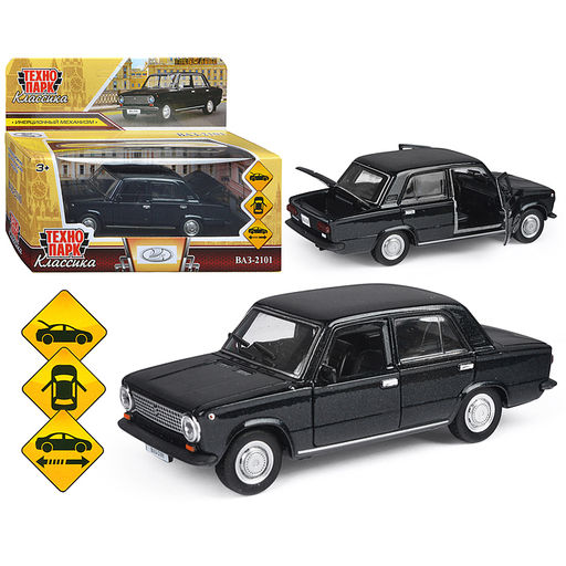 • Машина металл ВАЗ-2101 12 см, (двери, багаж, черный) инерц, в коробке