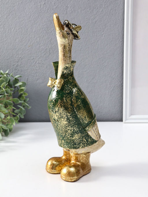 • Сувенир полистоун "Гусь в шляпе и зелёном пальто" 9,5х13х30 см