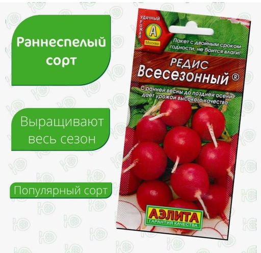 • Редис "Всесезонный" семена для открытого грунта и теплиц, 3 гр