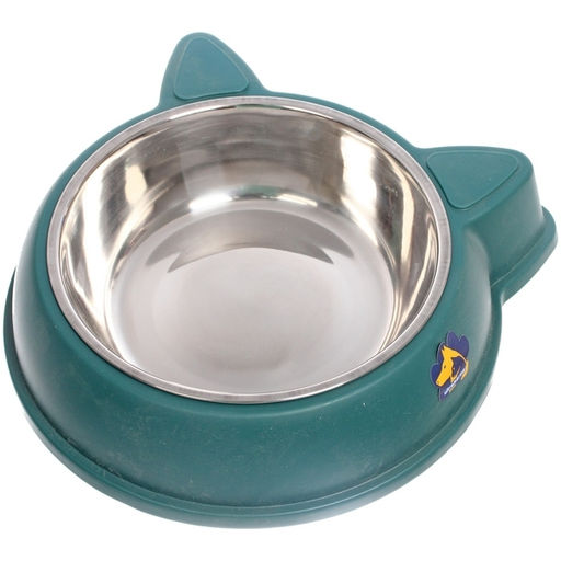 • Миска пластиковая с металлической чашкой "КОТИКИКИС", цвет бирюзовый, 22,5*5,5 / 15,5*5см
