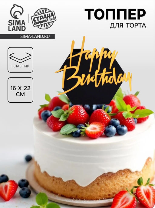 • Цена за 2 шт. Топпер для торта «С днём рождения», чёрно-золотой