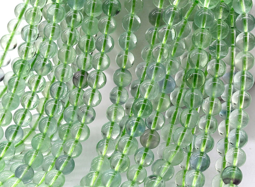 Бусины из флюорита зеленого шарик 6мм, 40см, 68 бусин Радуга камня