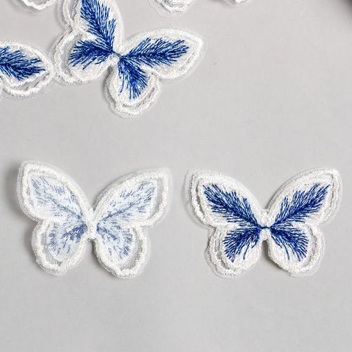 • Цена за 6 шт. Декор для творчества текстиль вышивка Бабочка бело-синяя, двойные крылья, 3.7?4.5 см