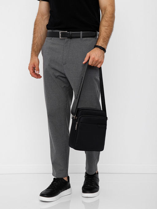 Сумка кросс-боди, выполнена из текстиля. Дополнена темной фурнитурой. Данная модель закрывается на молнию, носится через плечо или на плече. Встроенный ремень-стропа с регулировкой длины. Каркас  мягкий.
